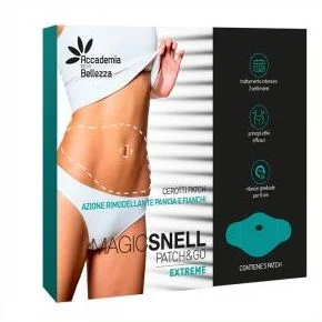 Ricchi di estratto di Sophora Japonica, Salicornia, Caffeina e Collagene, i Magicsnell Patch&Go tornano in formulazione Extreme! Riducenti, rassodanti e coadiuvanti per il trattamento degli inestetismi della cellulite, nel loro nuovo formato più grande che garantisce l'assorbimento degli attivi in modo uniforme sull'intero addome, e con una formulazione efficace già da sola, ma che trova la sua massima espressione accompagnandosi al trattamento professionale Magicsnell.