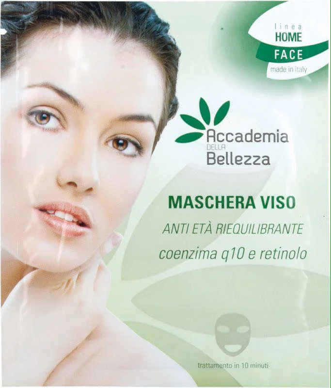 Maschera di bellezza in foglio di tessuto non tessuto preformato. Straordinario prodotto ricco di Retinolo (Vitamina A) che agisce come riequilibrante e antirughe e Coenzima Q10 che agisce come antinvecchiamento. Contiene anche Aloe vera (disarrossante e idratante) e Vitamina E attiva contro i radicali liberi.